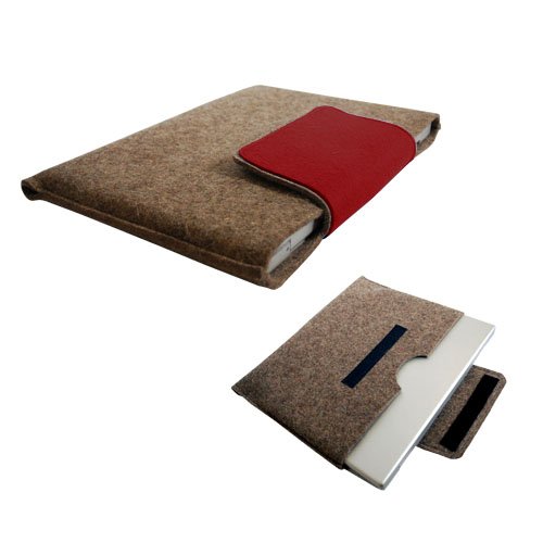 This style of Laptop sleeve is constructed of 5mm thick industrial gray felt, and features a secure colored flap. This laptop sleeve is perfect for anyone who wants a stylish, innovative way to protect their laptop! The flap is secured with strong Velcro, ensuring your laptop will stay safely protected. The laptop sleeve measures 15inch wide, 10.5inch long, with the flap measuring approximately 7.5inch wide. This size of sleeve can accommodate 15inch wide monitor laptops, as well as 13inch and is available in black, blue, dark red, dark blue, dark brown or olive.